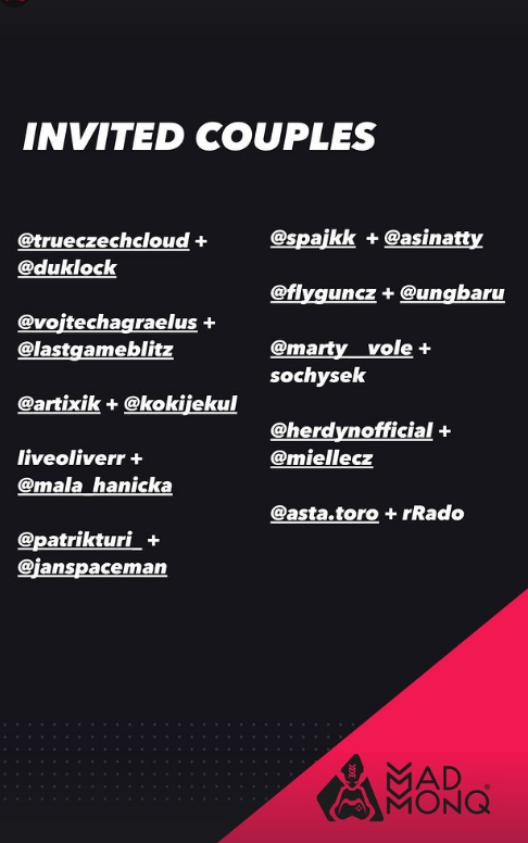 Společnost MADMONQ, která vyrábí nutriční doplňky pro hráče, uspořádá valentýnský turnaj dvojic v co-op hře s názvem Overcooked. Tento turnaj se bude odehrávat v Pátek 12. února od 15:00 do 19:00 na twitch kanálech streamerů.