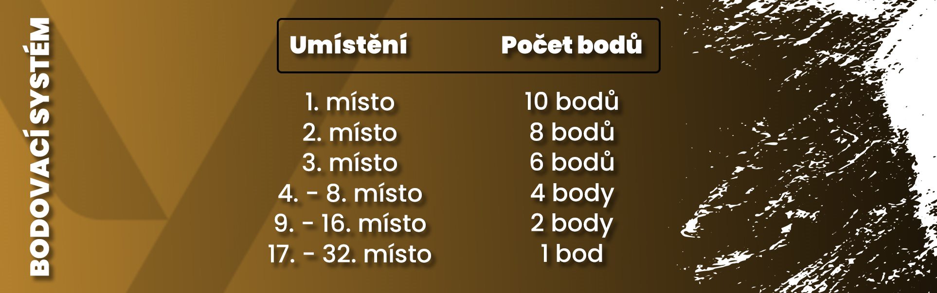 Týmy budou během celé série získávat body za umístění v jednotlivých turnajích. Finanční prize pool čeká na TOP 3 týmy s největším počtem bodů. Aktuální stav bodů najdeš v této tabulce. Pokud během série dojde ke změně sestavy hráčů, tak se tým považuje za nový a nepřenáší si body ze staré sestavy.