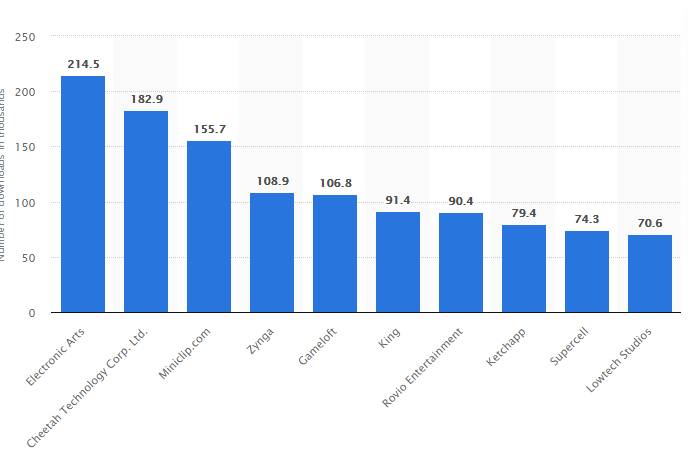 Zo štatistík stránky Phandroid sa dozvedáme rôzne zaujímavé fakty a štatistiky ohľadne mobilného hrania. Môžeme sa dozvedieť to, že najviac stiahnutí mobilných hier majú hry od známej spoločnosti Electronic Arts (EA), ktoré vydalo množstvo obľúbených hier. Patrí tam napríklad Fifa Mobile, Sims Mobile a pod.