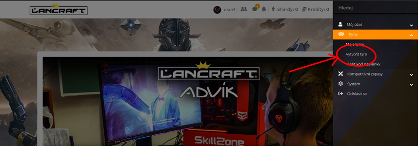 - Po úspěšném vytvoření týmu přejděte opět do Uživatelského panelu, kde zvolte možnost Moje týmy.