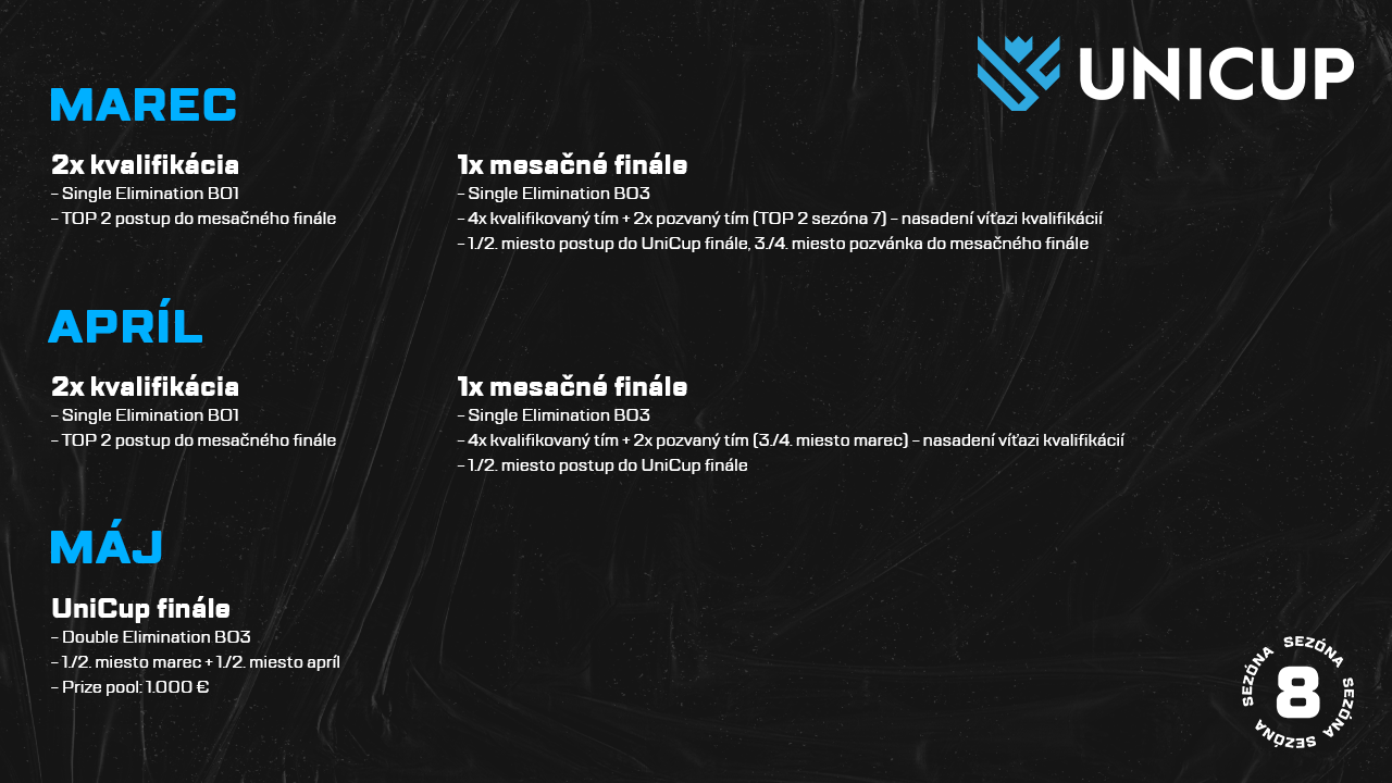 Brány ôsmej sezóny UniCupu sa oficiálne otvárajú. Nebude chýbať dvojica titulov, finančný prize pool ani offline finále