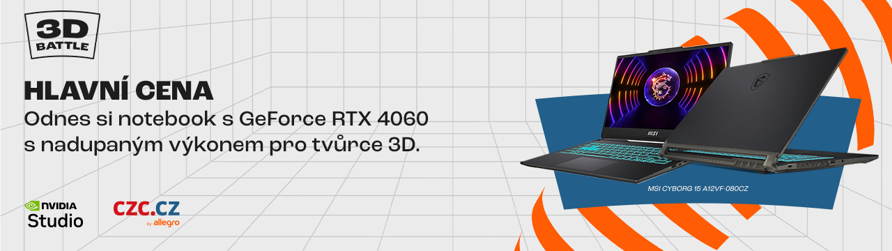 Na nejlepší práci čeká hlavní cena v podobě notebooku s GeForce RTX 4060 s nadupaným výkonem pro tvůrce 3D a v celkové hodnotě téměř 30.000 Kč.