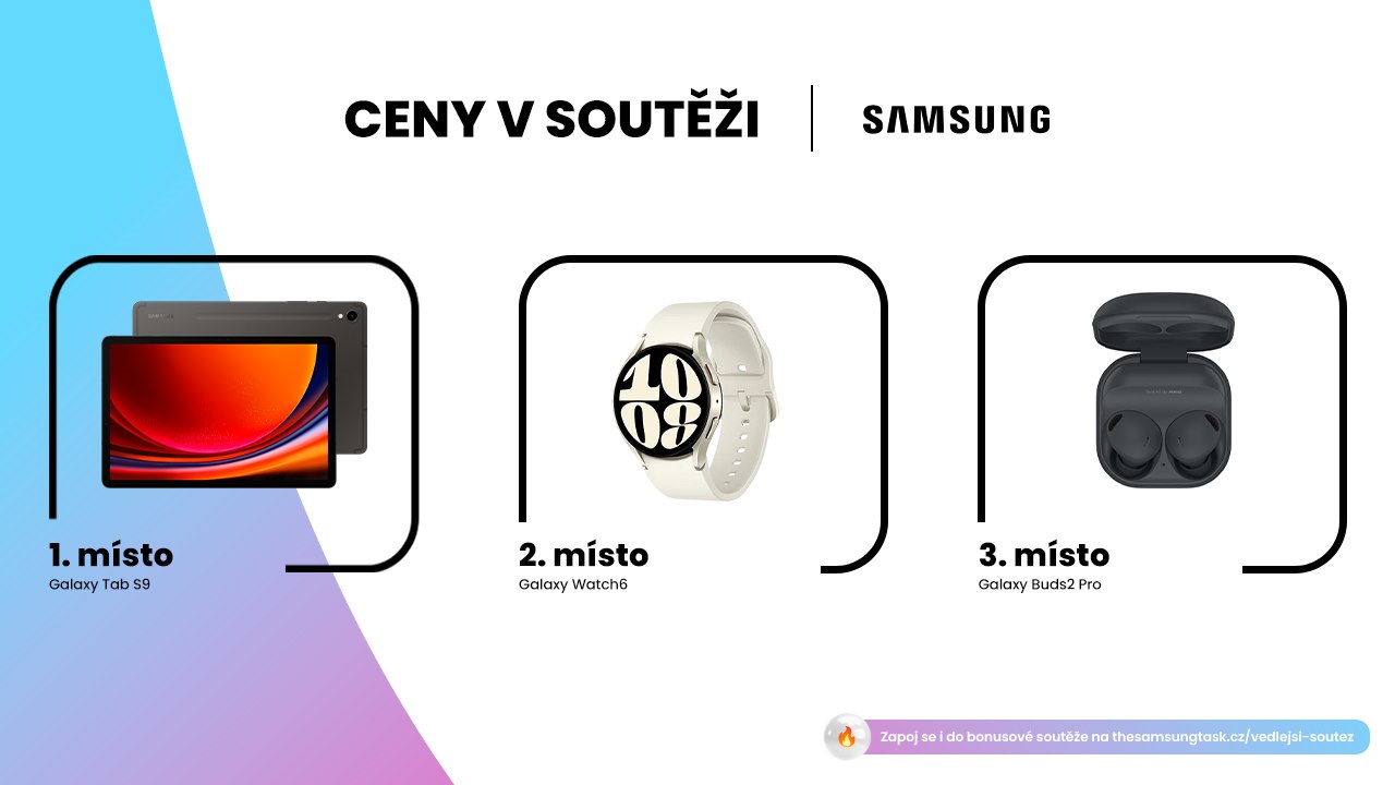 Kromě hlavní soutěže probíhá také vedlejší soutěž, ze které si můžete odnést hodinky Galaxy Watch6 Classic. Během dalších týdnů budou postupně odhalována čtyři krátká videa (mimo úvodního videa k soutěži), která vám blíže představí vybrané funkce Galaxy Tab S9.