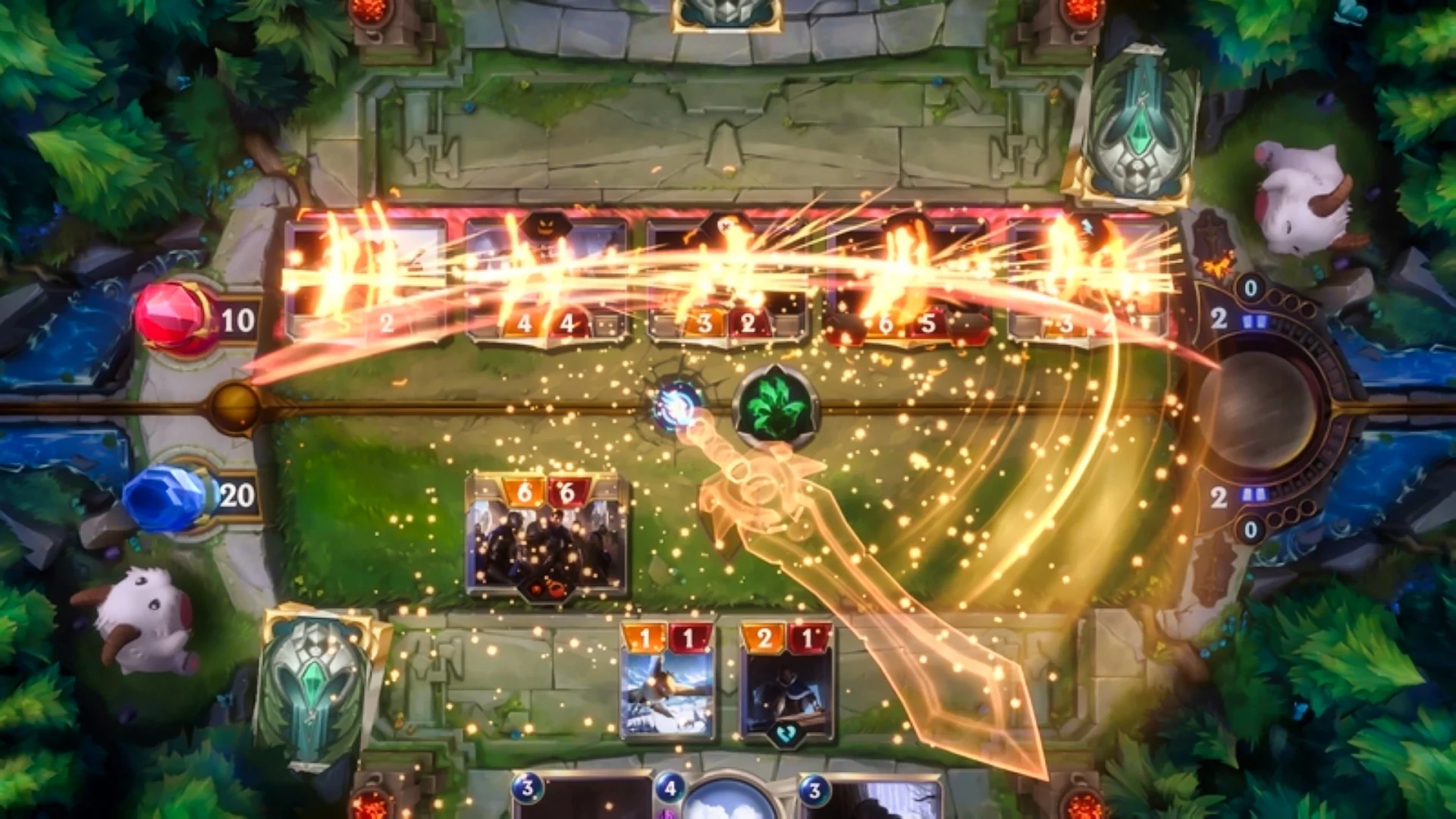 Každý začína s 20 životmi (všimni si číslo pri Nexus-e), s cieľom zabiť súpera ako prvý. Životy si navzájom uberáte neblokovanými útokmi followerov a šampiónov, prípadne kúzlami, ktoré striedavo vykladáte za manu. Číslo v pravom hornom rohu karty znamená, koľko mán stojí jej zahranie. Pri followeroch a šampiónoch je číslo vľavo dole útok (koľko spôsobí zranenia) a vpravo dole obrana (koľko zranení blokovaním a z kúziel vydrží). Kúzla majú účinok hneď po vyhodnotení, jednotky vykladáš na board (resp. field) a zostávajú v hre, kým neumrú. Field je priestor pre permanentné karty, ak neprebieha súboj sú v „backline“, ak práve bojujú, sú v „battlefield“´. Limit maximálneho počtu jednotiek na každej strane fieldu (aj battlefieldu) je šesť. Na toto si dávaj pozor pri šampiónoch, ktorí do súboja vtiahnu ďalšie jednotky, napríklad Thresh a Hecarim.