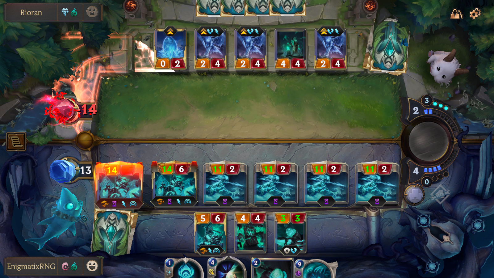 Ak hráš Magic, geniálneho otca moderných kartových strategických hier, poteší ťa zmena a lepší manový systém. LoR integruje výhodu automatického pribúdnutia manového kryštálu - takže si netrháš vlasy, keď ti nechodia landy a tým pádom nemáš čo hrať. Žiadny mana screw a mana flood v LoR nehrozí. Myslím si, že obnova životov na konci kola je skôr prežitok z analógových kariet, a neregenerovanie jednotiek v plne digitálych HS a LoR je dobrý krok.